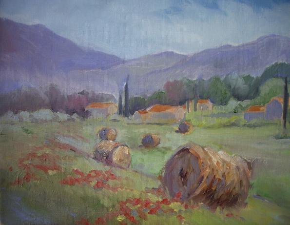 Poppies and Hay Bales